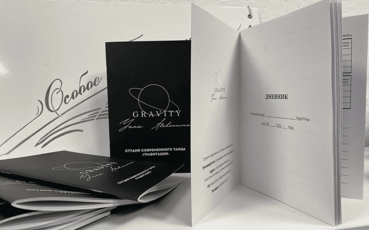 Студия современного танца «Гравитация» (г. Константиновск) заказала в типографии «Особое приглашение» тираж фирменных дневников учащихся.